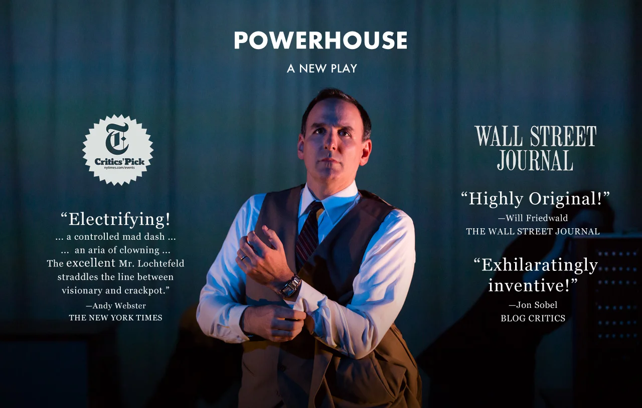 Sinking Ship workshopped Powerhouse at the 2009 New York International Fringe Festival, where it played to sold-out crowds and rave reviews. The production won an award from the festival for “Outstanding Ensemble” and went on to play a short extension as part of the FringeNYC Encores Series. In 2012, the script for Powerhouse was a finalist for the Eugene O’Neill National Playwrights Conference.